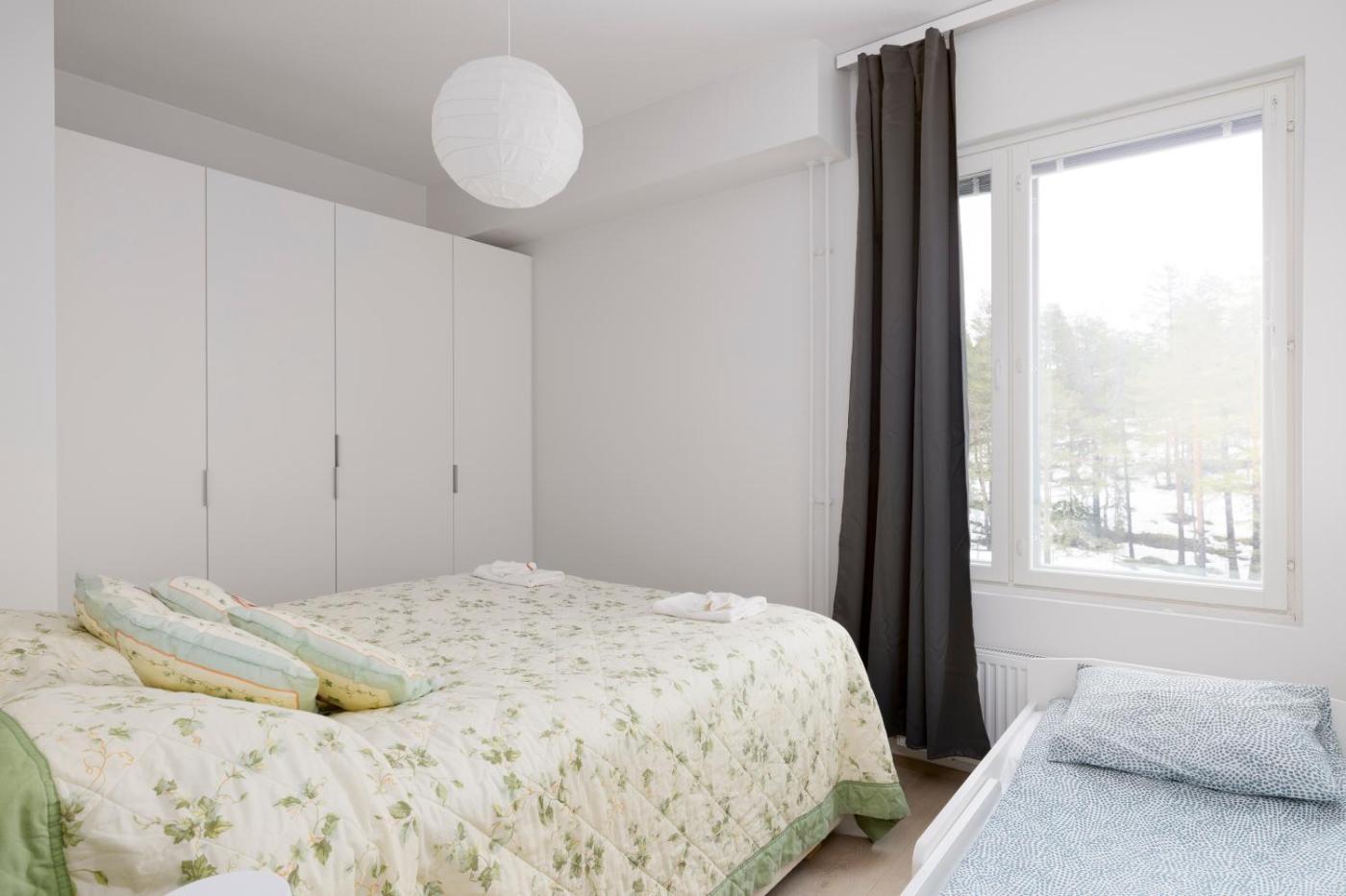 Two-Bedroom Apartment. The sauna is a top feature of this apartment. In the kitchen, guests will find a stovetop, a refrigerator, a dishwasher and kitchenware. Boasting a terrace with city views, this apartment also features a washing machine and a flat-screen TV. The unit has 3 beds and 1 futon.