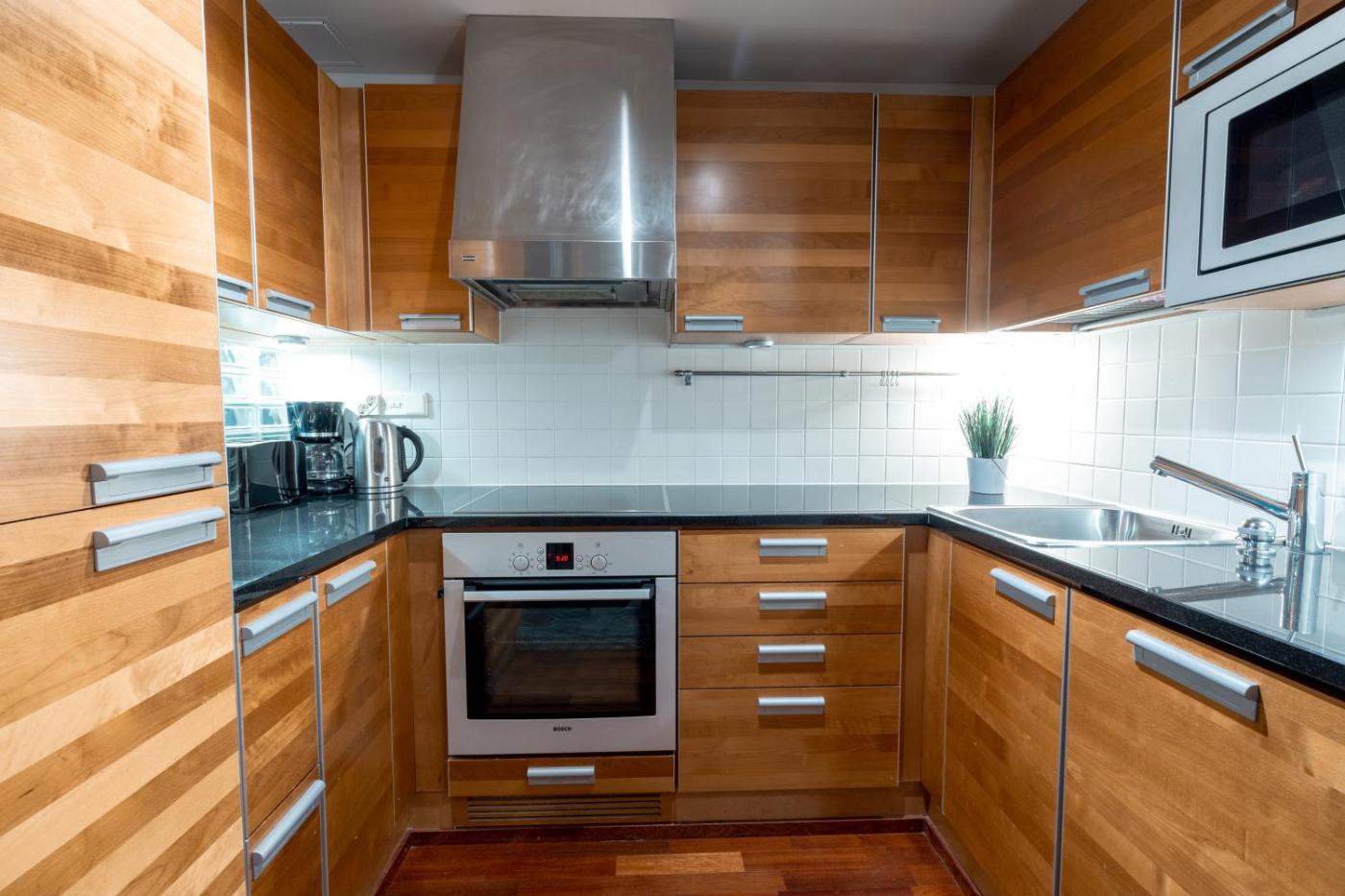 Studio Apartment. This apartments standout feature is the sauna. This apartment includes a kitchen, a seating area, 1 separate bedroom and 1 bathroom with a shower and a bidet. In the fully equipped kitchen, guests will find a stovetop, a refrigerator, a dishwasher and kitchenware. Boasting a balcony with city views, this apartment also offers a washing machine and a flat-screen TV. The unit has 2 beds.