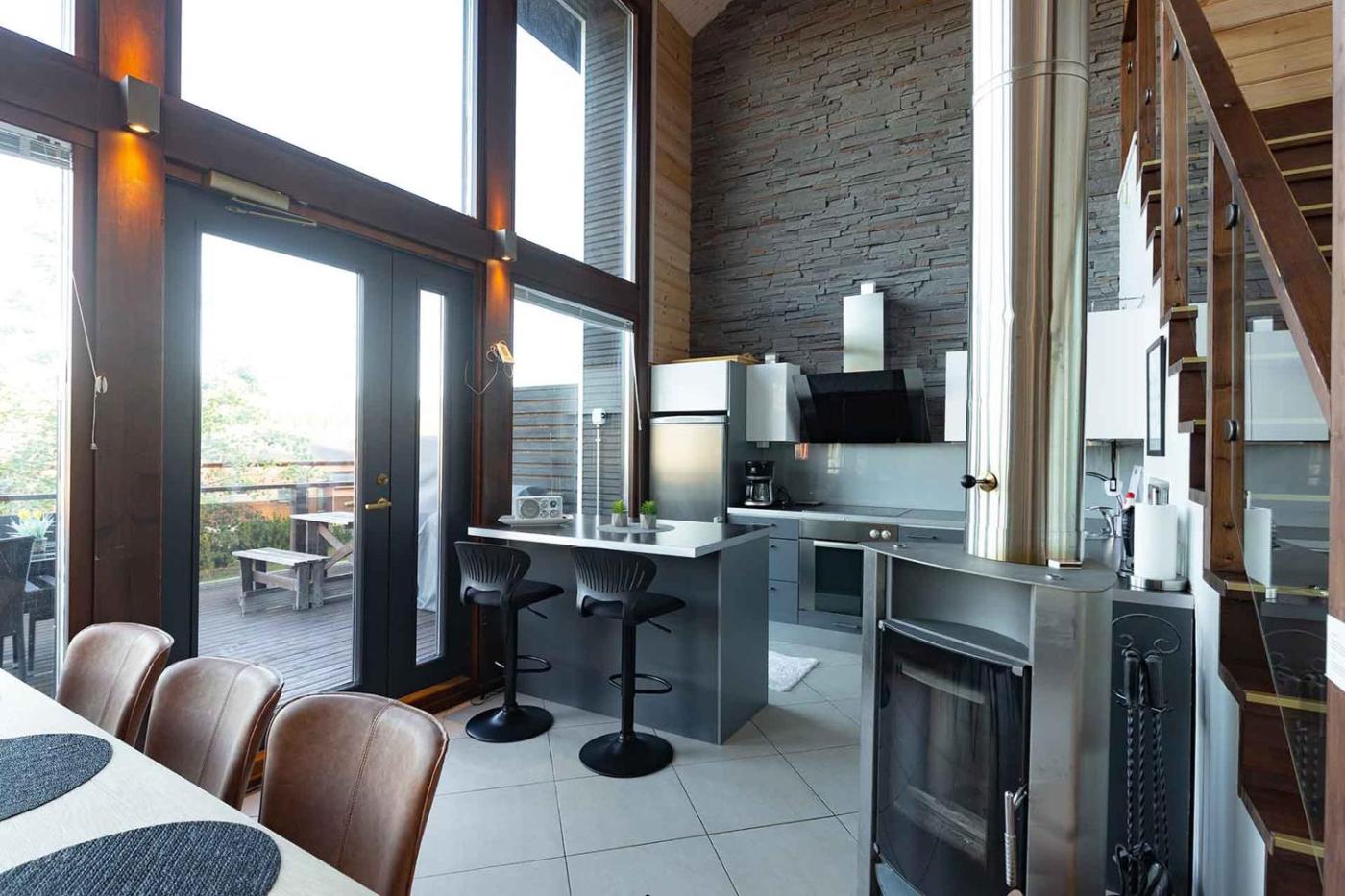 Three-Bedroom House. This holiday home boasts a sauna and a fireplace. Featuring a private entrance, this air-conditioned holiday home consists of 1 living room, 3 separate bedrooms and 1 bathroom with a shower and a bidet. Guests will find a stovetop, a refrigerator, a dishwasher and an oven in the well-fitted kitchen. The holiday home also offers a barbecue. Boasting a terrace with mountain views, this holiday home also provides a washing machine and a flat-screen TV with streaming services. The unit offers 8 beds.