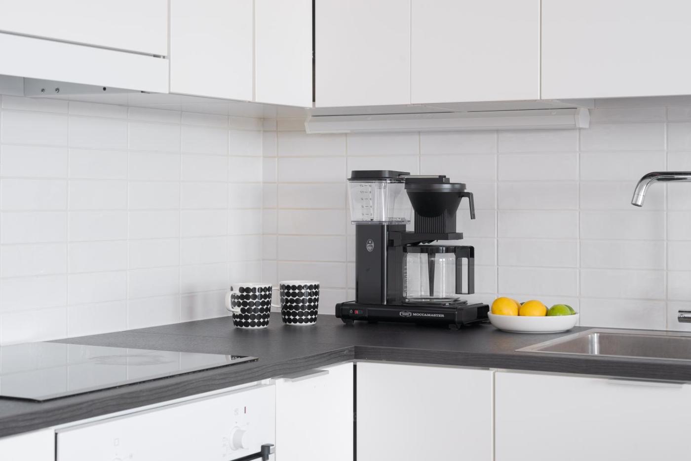 One-Bedroom Apartment with Balcony and Water View. The sauna is the standout feature of this apartment. Boasting a private entrance, this air-conditioned apartment features 1 living room, 1 separate bedroom and 1 bathroom with a shower and a bidet. In the well-fitted kitchen, guests will find a stovetop, a refrigerator, a dishwasher and kitchenware. The apartment features a flat-screen TV, a washing machine, soundproof walls, a tea and coffee maker as well as lake views. The unit has 4 beds.