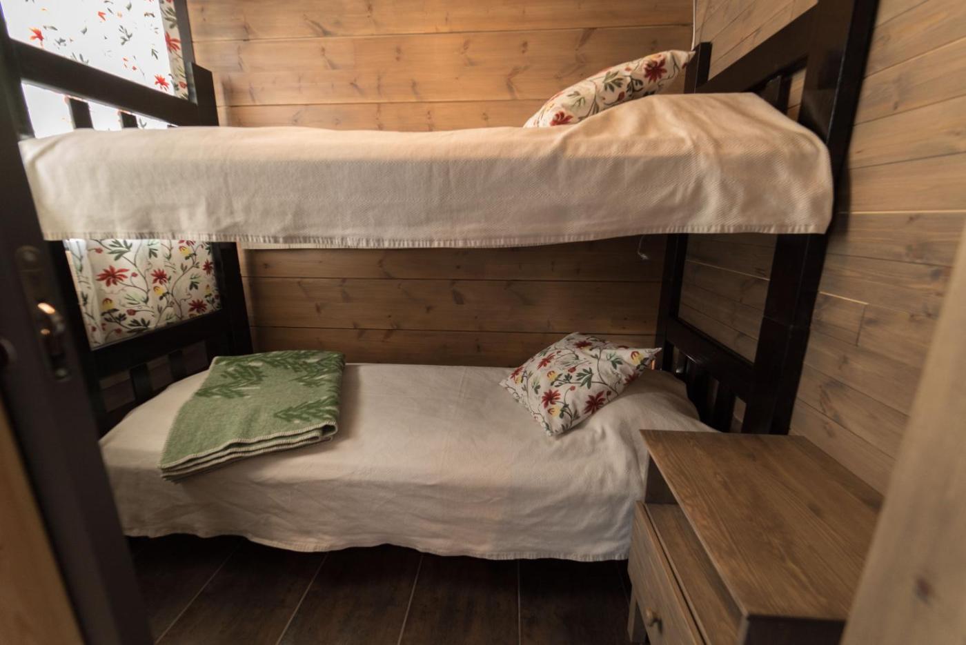 Quadruple Room with Bathroom. Cosy room with two bunk beds, private bathroom with shower. Shared equipped kitchen and living area with fireplace and TV. Free WiFi, linen and towels. ;
