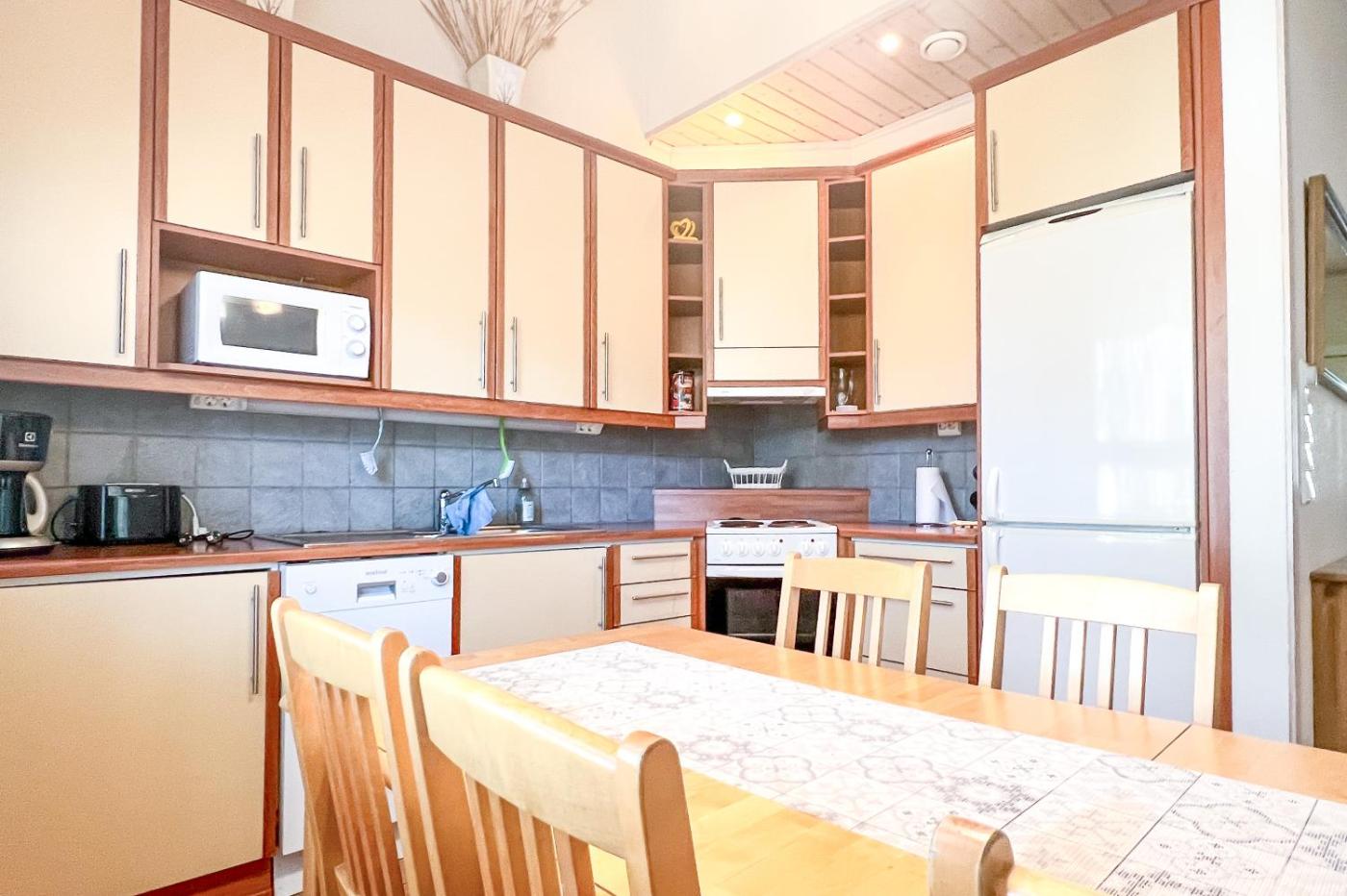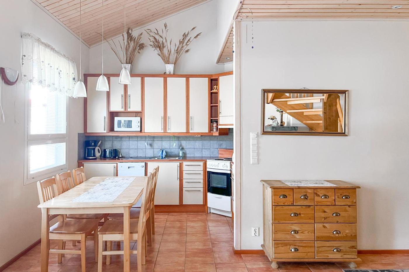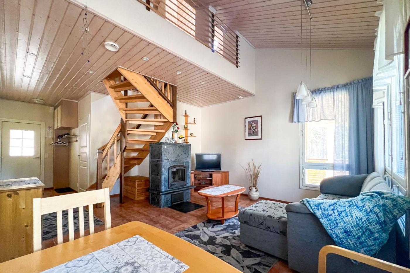 Three-Bedroom House. This holiday homes special features are the sauna and the fireplace. Boasting a private entrance, this holiday home also features 1 living room, 3 separate bedrooms and 1 bathroom with a shower. Guests will find a stovetop, a refrigerator, a dishwasher and kitchenware in the well-fitted kitchen. The holiday home also comes with a barbecue. Featuring a terrace, this holiday home also features a washing machine, a coffee machine and a flat-screen TV. The unit has 6 beds.