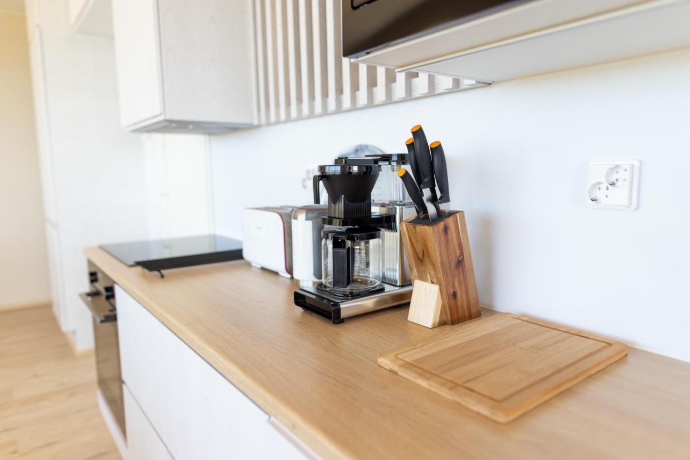 Two-Bedroom Apartment. The sauna is the standout feature of this apartment. Guests will find a stovetop, a refrigerator, a dishwasher and kitchenware in the well-equipped kitchen. The apartment also features a barbecue. The air-conditioned apartment offers a flat-screen TV, a washing machine, a coffee machine, a dining area as well as sea views. The unit has 4 beds.