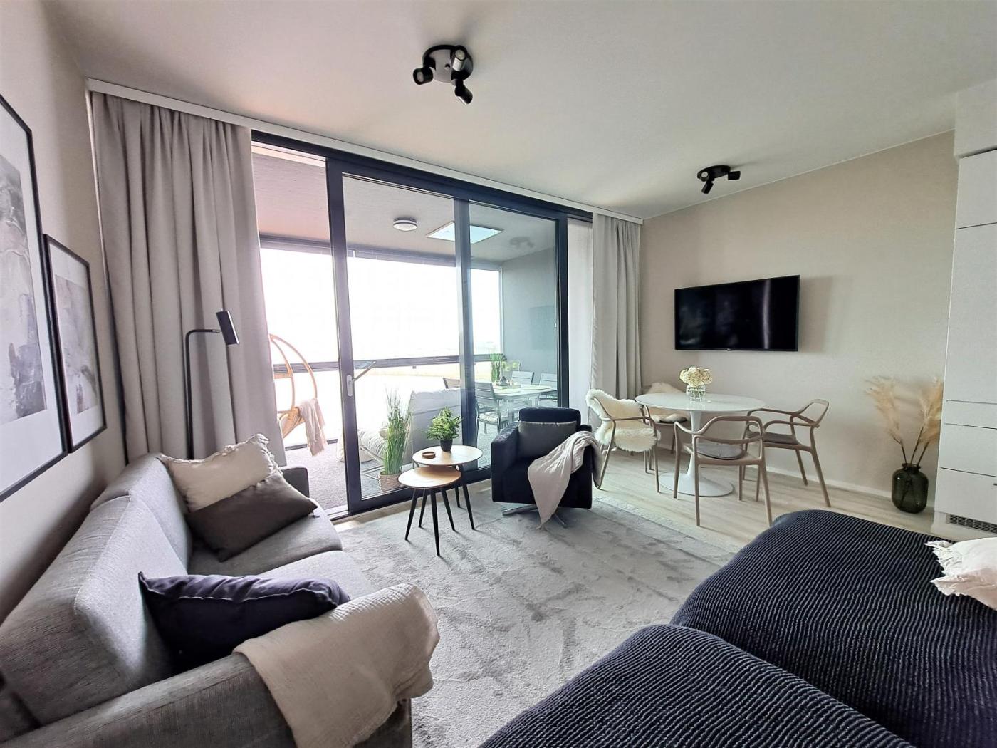 The apartment is fitted with a flat-screen TV and a living room. The kitchen is equipped with a dishwasher, an oven and a microwave, as well as coffee machine and kettle. The accommodation offers an air conditioning, a heating and a private bathroom.