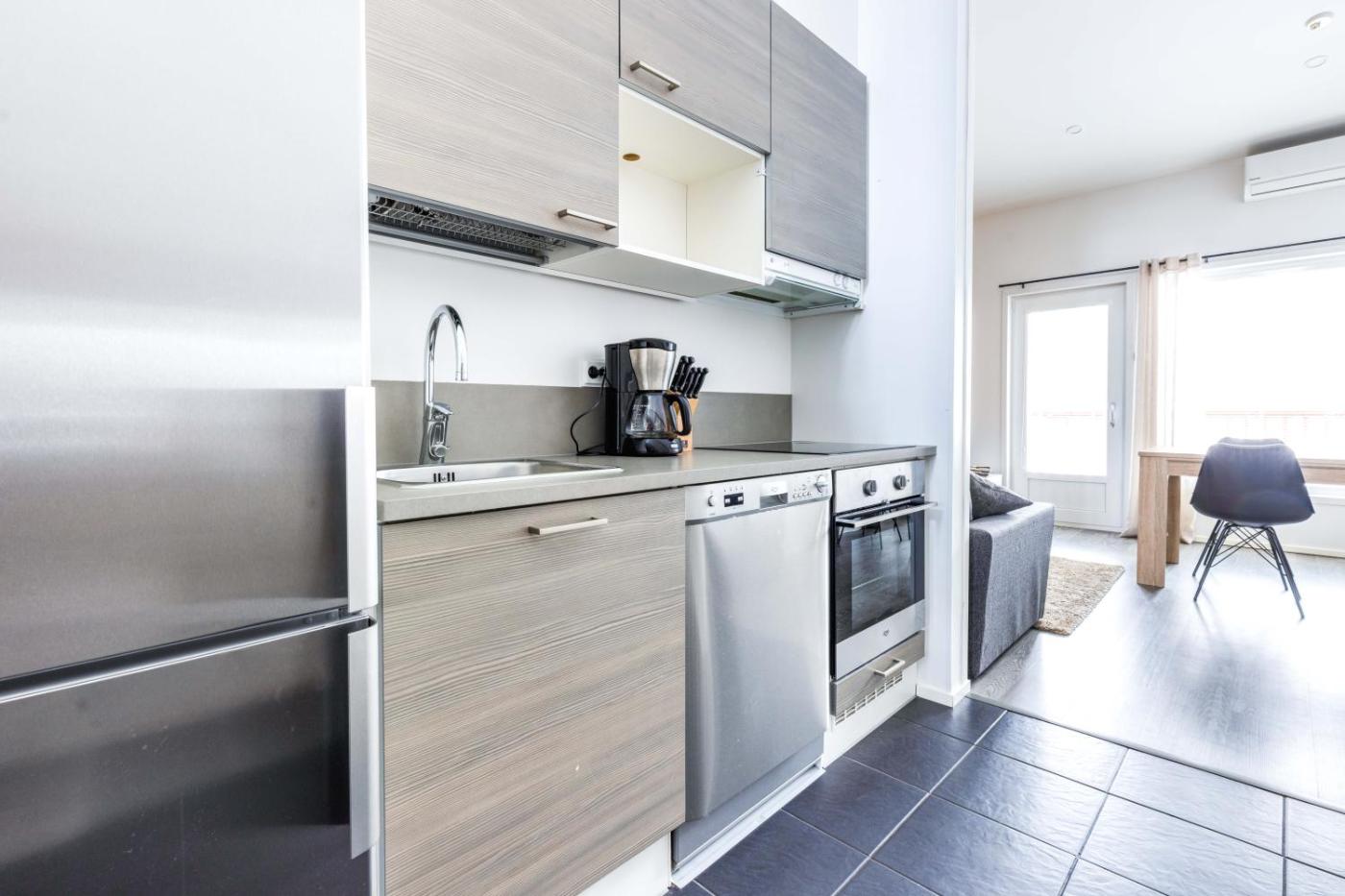 Two-Bedroom Apartment. This apartment features a sauna. Boasting a private entrance, this air-conditioned apartment includes 1 living room, 2 separate bedrooms and 1 bathroom with a shower and a bidet. The well-equipped kitchen has a stovetop, a refrigerator, a dishwasher and kitchenware. Featuring a terrace with garden views, this apartment also offers a washing machine and a flat-screen TV. The unit has 4 beds.