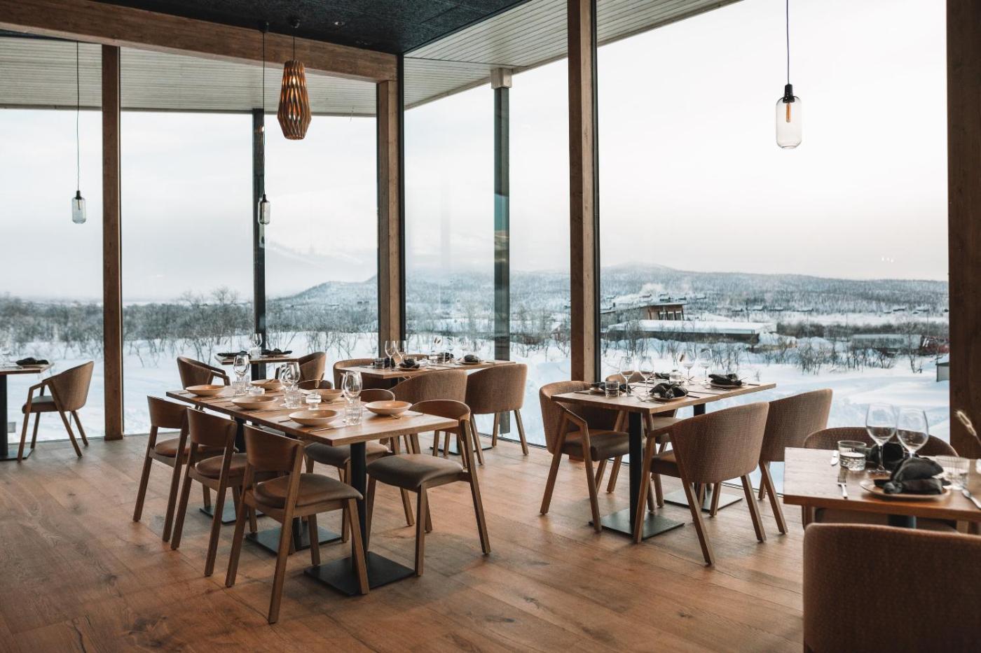 The wood-built design hotel was built in 2023, and it offers modern hotel rooms with floor to ceiling views to the nature. Panoramic windows face the majestic Saana landscapes, giving you a perfect view of the northern sky; Kilpisjärvi is one of the best places in whole Europe to see the Aurora Borealis