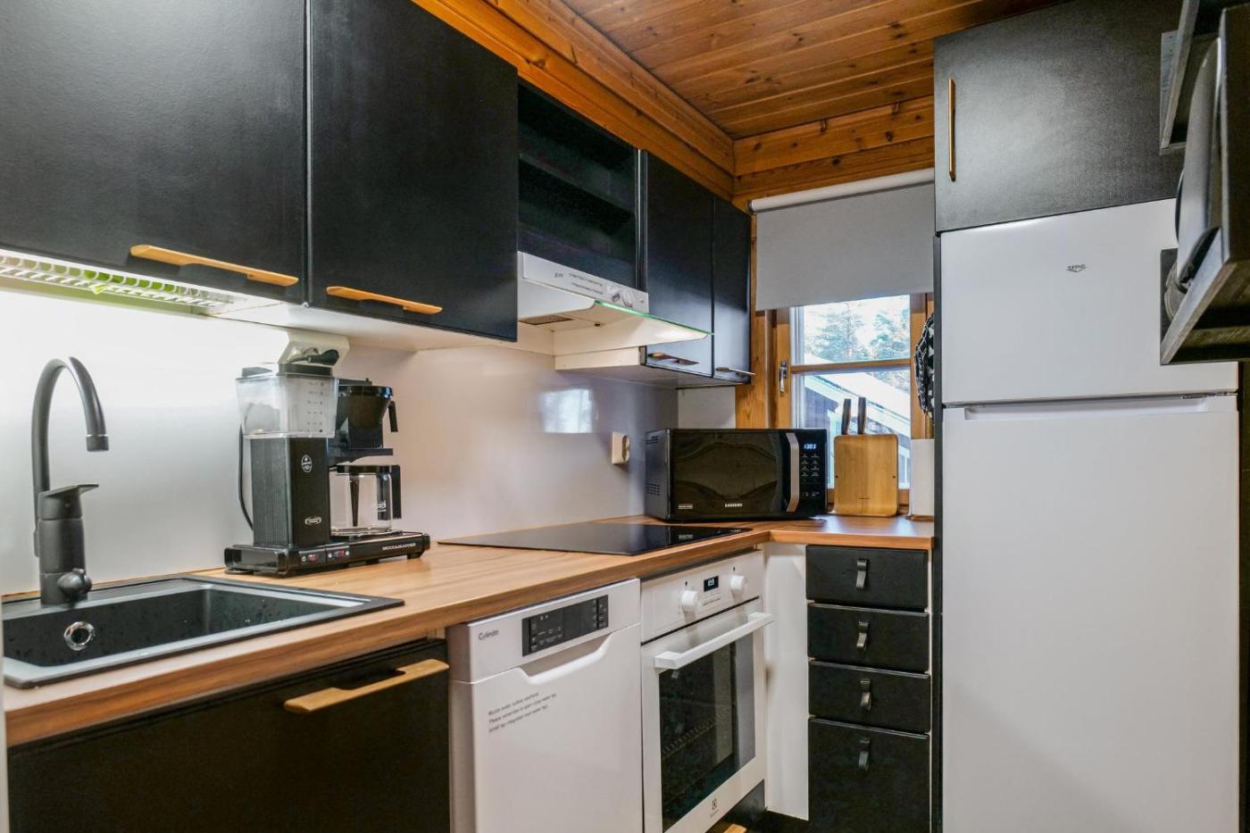 Three-Bedroom Chalet. The sauna and fireplace are the special features of this chalet. Guests will find a stovetop, a refrigerator, a dishwasher and kitchenware in the kitchen. The chalet also includes a barbecue. The air-conditioned chalet features a flat-screen TV, a washing machine, a private entrance, a tea and coffee maker as well as lake views. The unit has 6 beds.