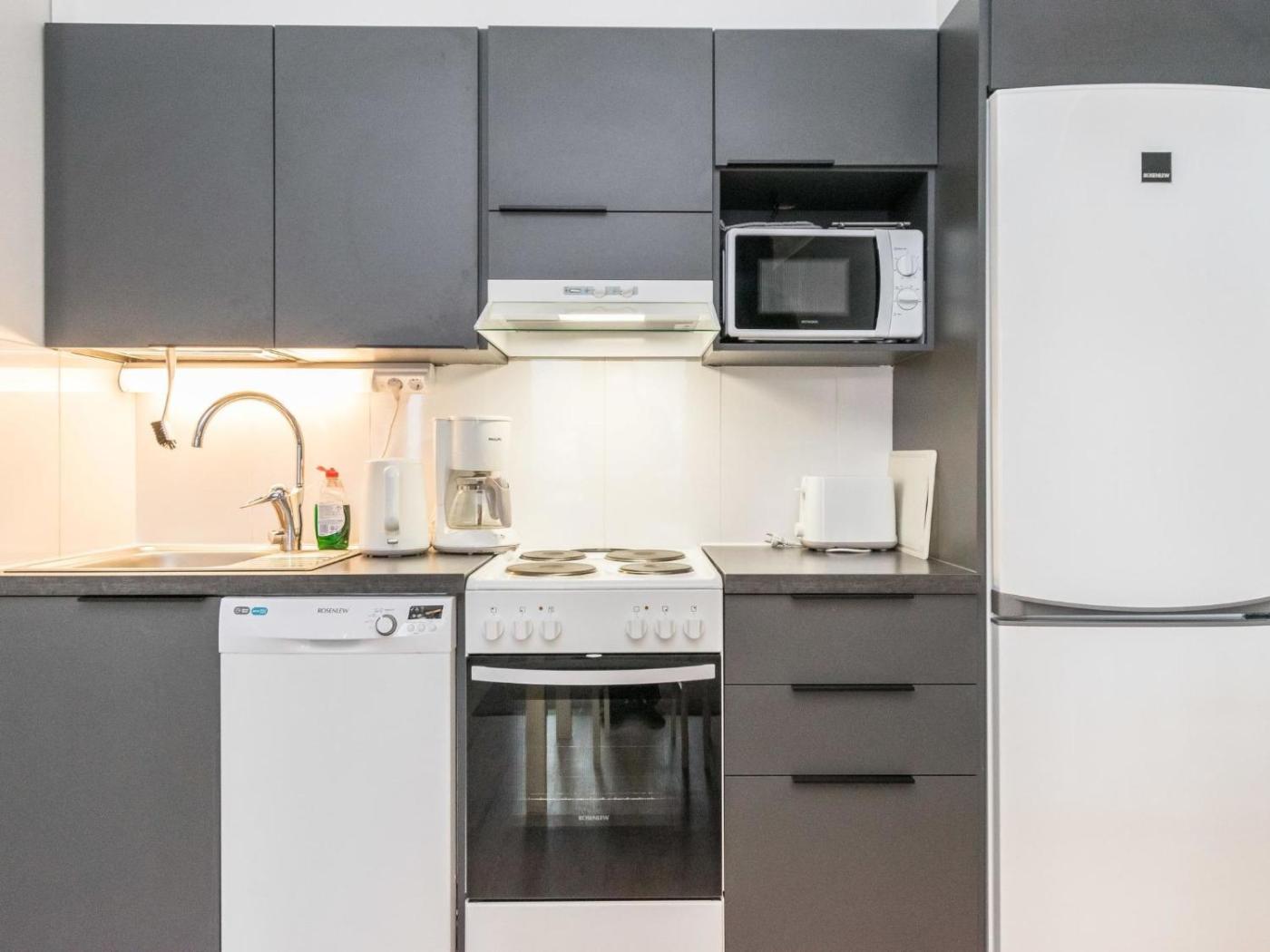 If you prefer to cook in the comfort of your own place, you can make use of the kitchenette facilities, which include a dishwasher, a fridge and kitchenware.