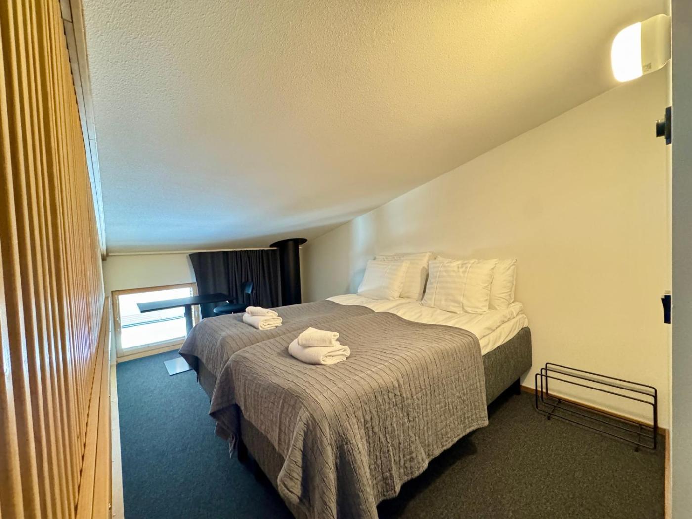 Two-Bedroom Apartment. The sauna is a top feature of this apartment. Guests can make meals in the kitchen that is fitted with a stovetop, a refrigerator, a dishwasher and kitchenware. The spacious apartment offers a washing machine, soundproof walls, a tea and coffee maker, a dining area, as well as a flat-screen TV. The unit has 7 beds.