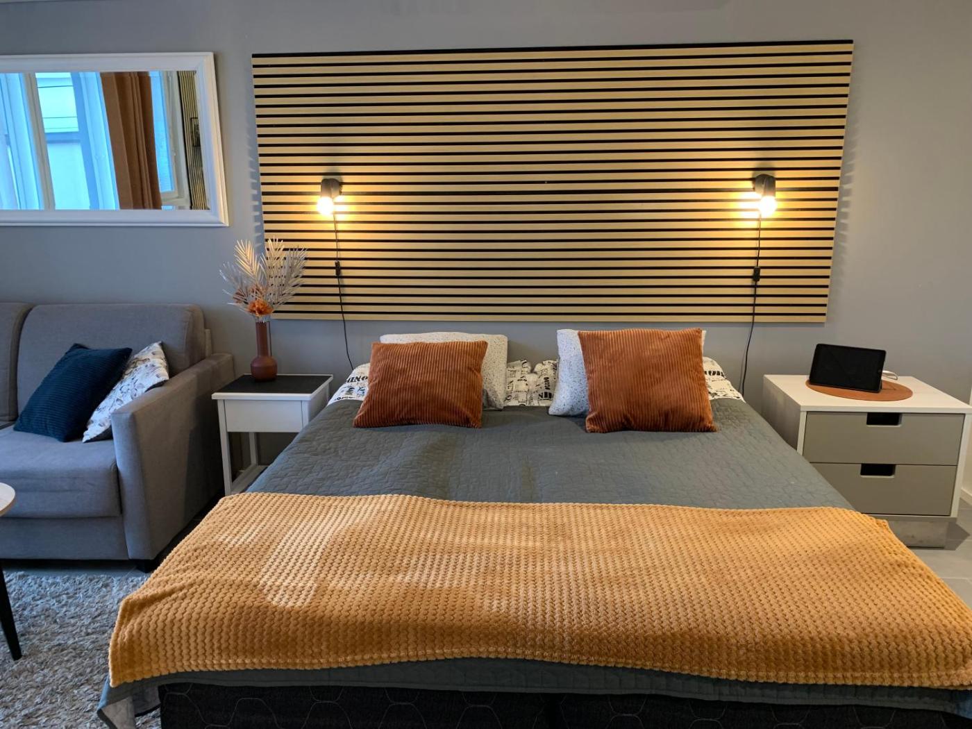 Studio. This studios special feature is the sauna. The well-fitted kitchen has a stovetop, a refrigerator, a dishwasher and kitchenware. The studio offers soundproof walls, a tea and coffee maker, as well as a private bathroom boasting a shower and a bidet. The unit has 2 beds.