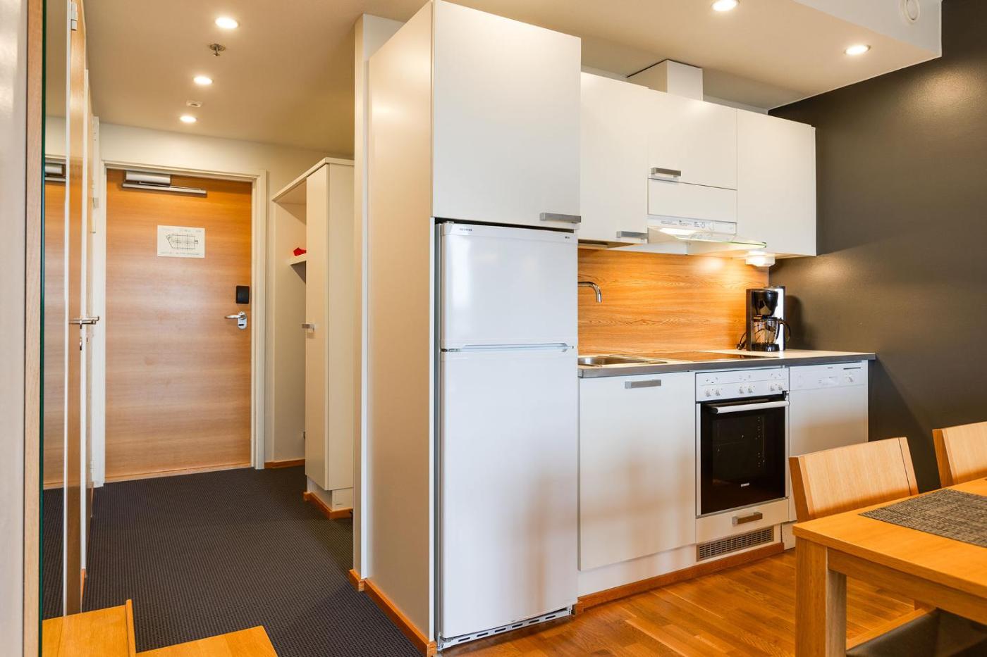 One-Bedroom Apartment. The sauna is a top feature of this apartment. This apartment includes 1 living room, 1 separate bedroom and 1 bathroom with a shower. The fully equipped kitchen has a refrigerator, a dishwasher, an oven and a microwave. Boasting a balcony, this apartment also offers a washing machine, a coffee machine and a flat-screen TV. The unit has 3 beds.