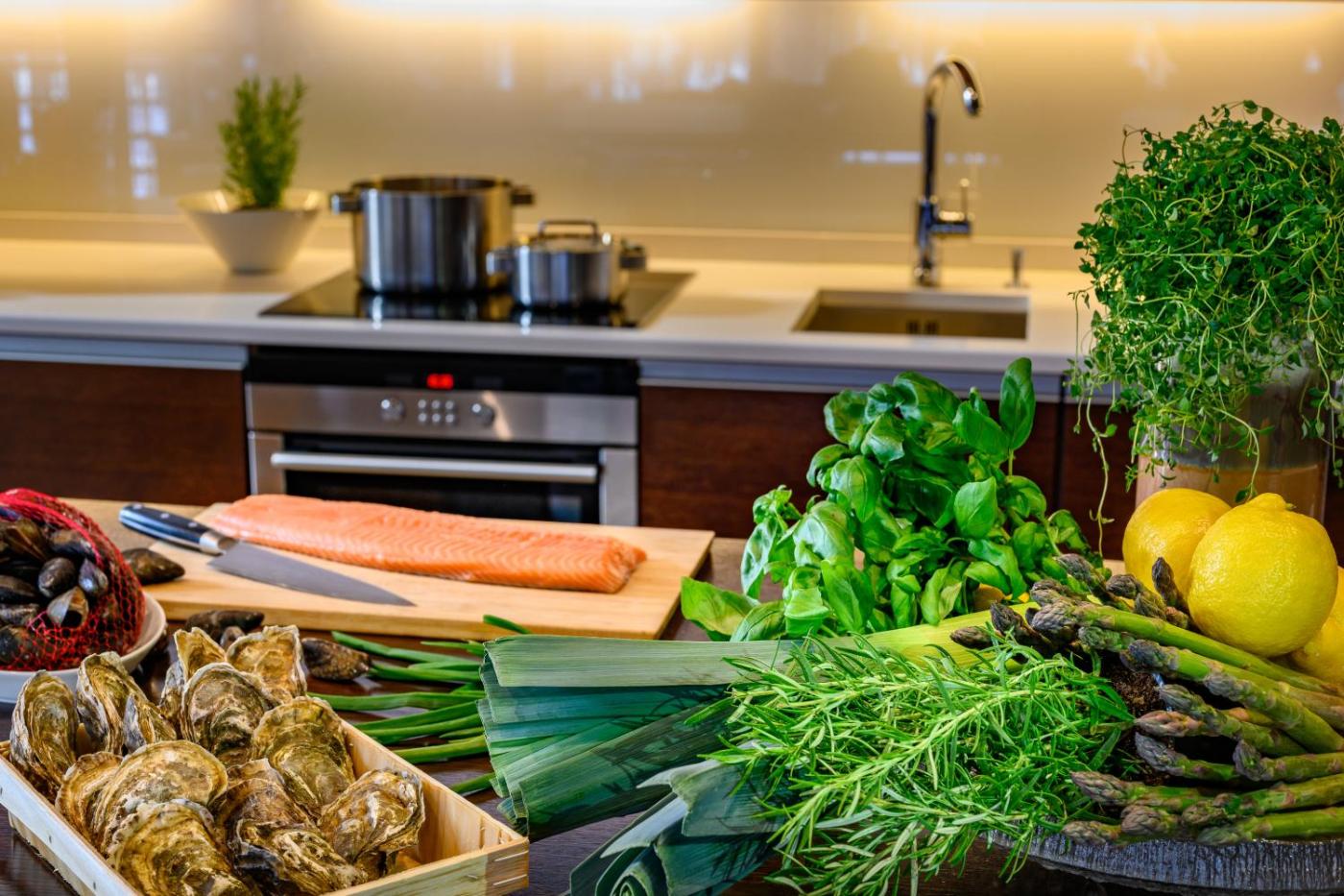 The villas fully equipped kitchen includes a stove, a microwave and a dishwasher. Private chefs are available on request.