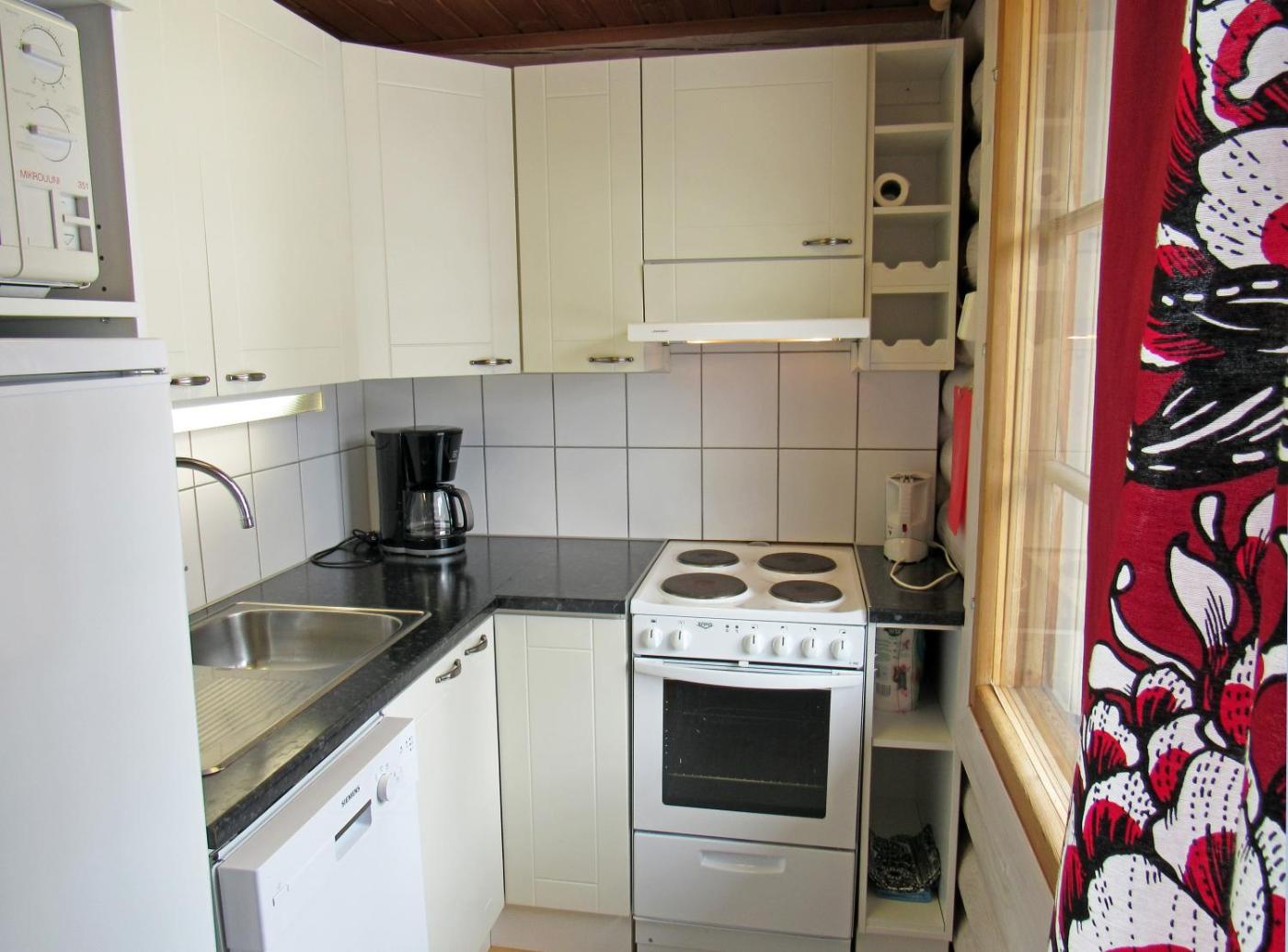 One-Bedroom Apartment. This apartment features a sauna and a fireplace. Boasting a private entrance, this apartment features 1 living room, 1 separate bedroom and 1 bathroom with a walk-in shower and a hairdryer. Meals can be prepared in the kitchen, which has a stovetop, a refrigerator, a dishwasher and kitchenware. The apartment features a tea and coffee maker, a dining area, a sofa, heating and a flat-screen TV. The unit has 4 beds.