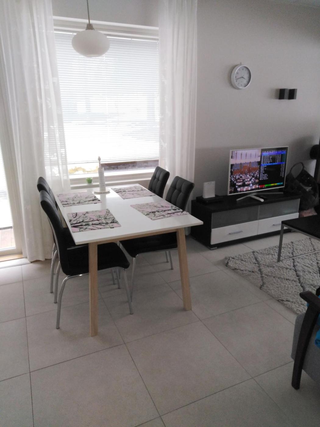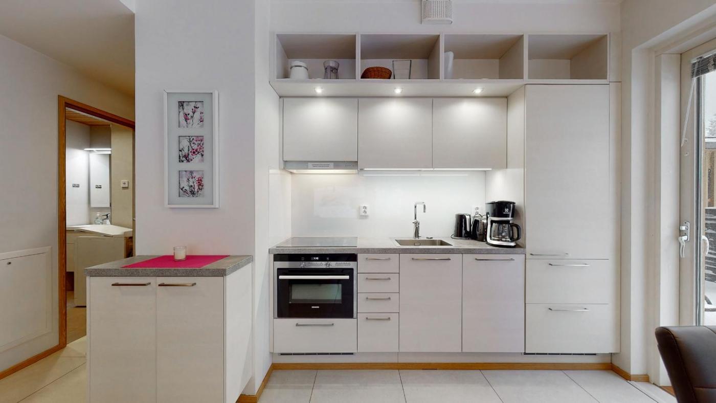 Two-Bedroom Apartment. This apartments special feature is the sauna. This apartment consists of 1 living room, 2 separate bedrooms and 1 bathroom with a shower. Guests can make meals in the kitchen that is equipped with a refrigerator, a dishwasher, kitchenware and an oven. The apartment provides a washing machine, a coffee machine, heating and a flat-screen TV. The unit offers 5 beds.