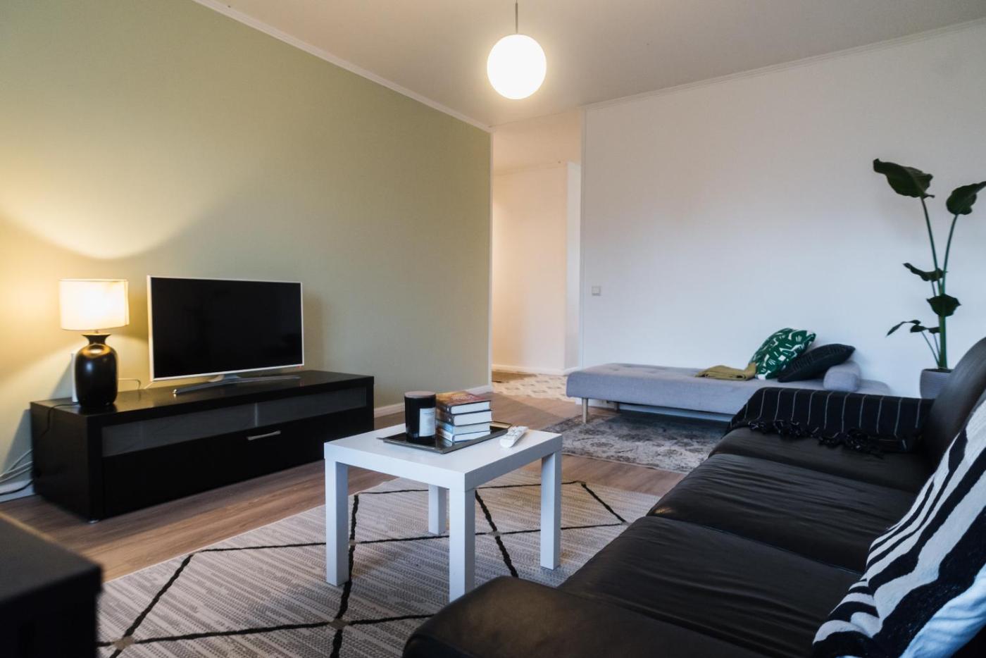 One-Bedroom Apartment. This apartment includes 1 bedroom, a kitchen and 1 bathroom with a shower and a hairdryer. Guests can make meals in the kitchen that is fitted with a stovetop, a refrigerator, a dishwasher and kitchenware. Boasting a balcony, this apartment also offers a washing machine, a tea and coffee maker and a flat-screen TV. The unit has 1 bed.