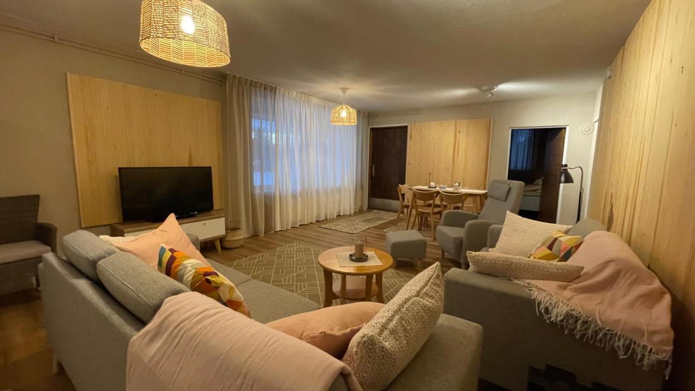 Two-Bedroom Apartment. The sauna is the standout feature of this apartment. Guests can make meals in the kitchen that has a stovetop, a refrigerator, a dishwasher and kitchenware. The spacious apartment offers a washing machine, a private entrance, a tea and coffee maker, a dining area and a flat-screen TV. The unit has 3 beds.