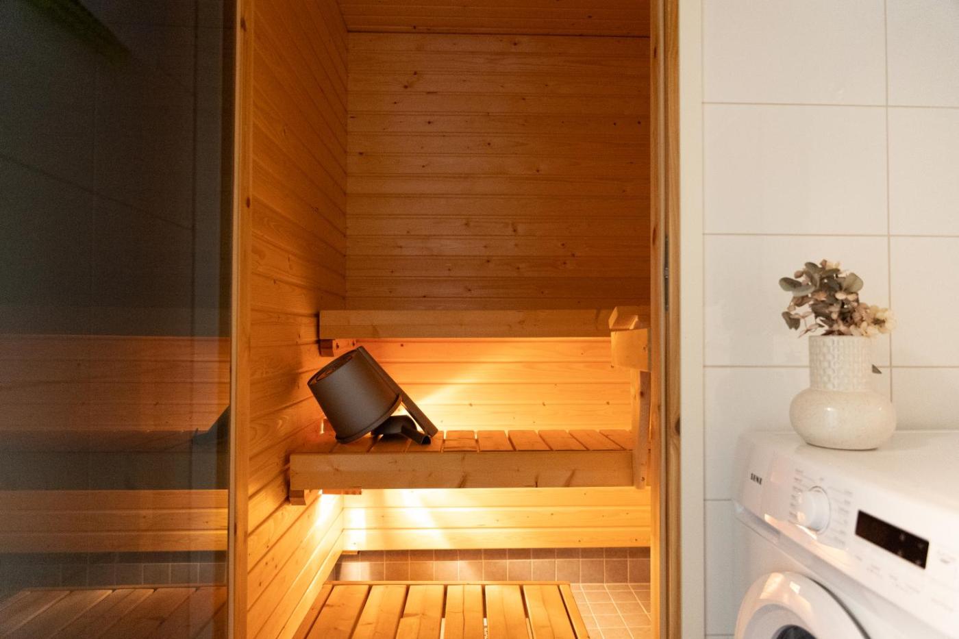 Superior Apartment with Sauna. Guests will have a special experience as this apartment offers a sauna. Featuring a private entrance, this air-conditioned apartment is comprised of 1 living room, 1 separate bedroom and 1 bathroom with a shower and a bidet. The fully equipped kitchen features a stovetop, a refrigerator, a dishwasher and kitchenware. There is a washing machine, soundproof walls and a balcony and complimentary chocolate is featured for guests. The unit offers 3 beds.