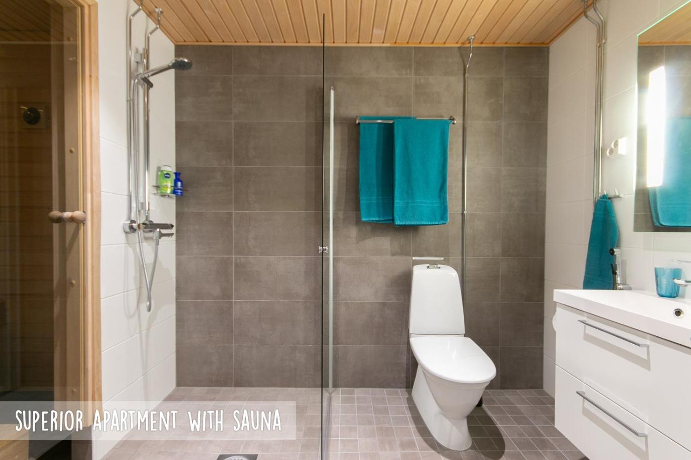 Superior Apartment with Sauna. This apartments standout feature is the sauna. The apartment has 2 bedrooms and 1 bathroom with a walk-in shower and free toiletries. In the well-fitted kitchen, guests will find a stovetop, a refrigerator, a dishwasher and kitchenware. Boasting a balcony with city views, this apartment also offers a washing machine and a flat-screen TV with cable channels. The unit has 3 beds. ;