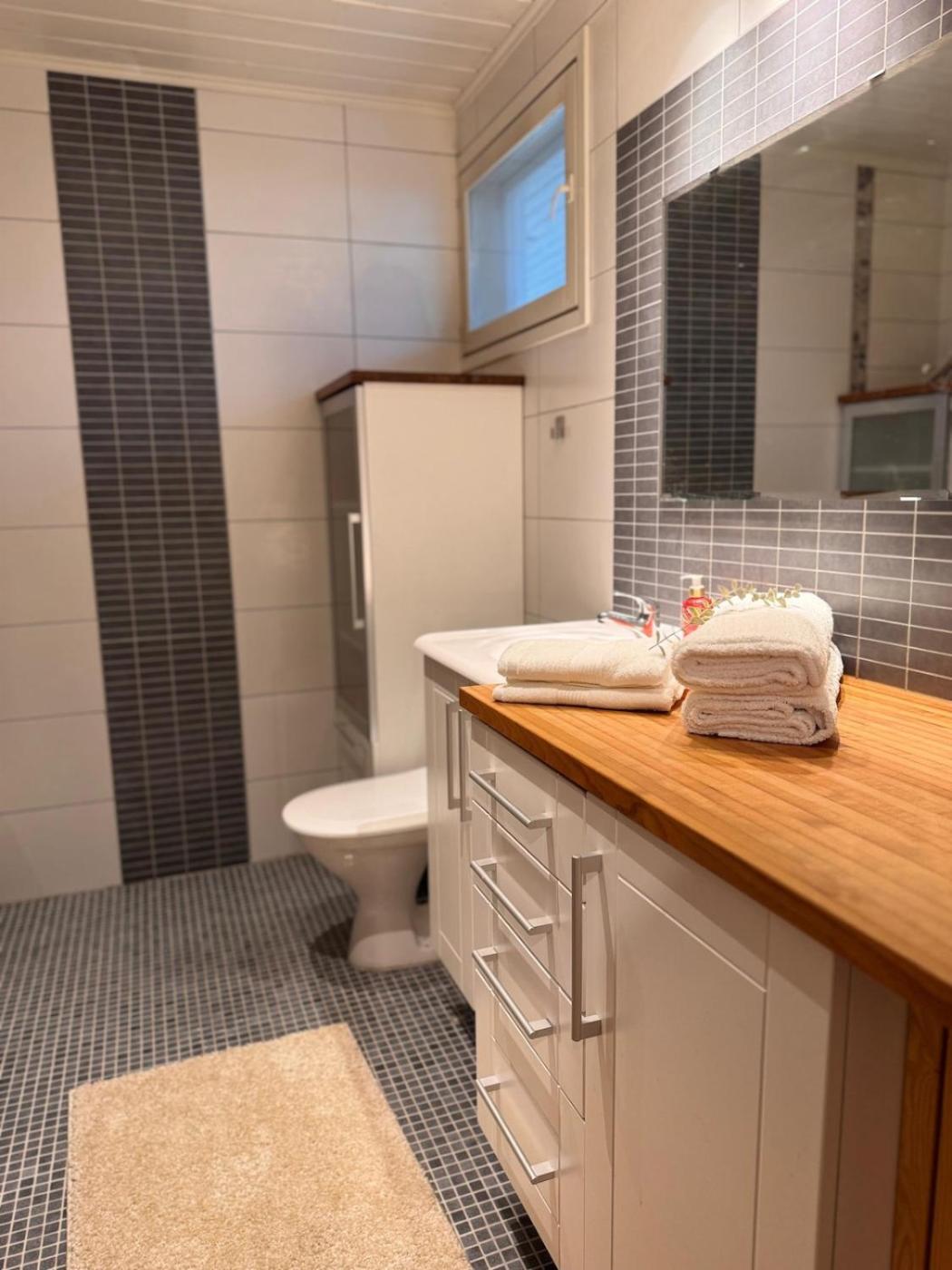 Three-Bedroom House. Guests will have a special experience as this holiday home offers a sauna and a fireplace. This spacious holiday home consists of 2 living rooms, 3 separate bedrooms and 1 bathroom with a shower and a bidet. The fully equipped kitchen features a stovetop, a refrigerator, a dishwasher and kitchenware. Featuring a terrace with garden views, this holiday home also provides a washing machine and a flat-screen TV with cable channels. The unit offers 4 beds.