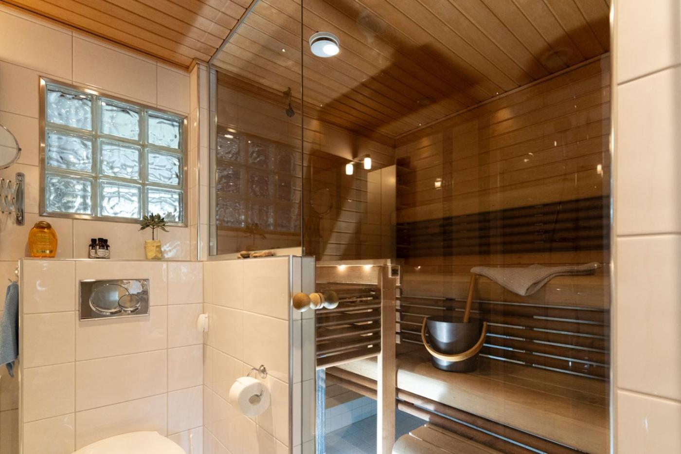 Three-Bedroom Apartment. This apartment boasts a sauna and a fireplace. The well-fitted kitchen features a stovetop, a refrigerator, a dishwasher and kitchenware. The spacious apartment provides a flat-screen TV, a washing machine, a tea and coffee maker, a dining area as well as city views. The unit offers 4 beds.