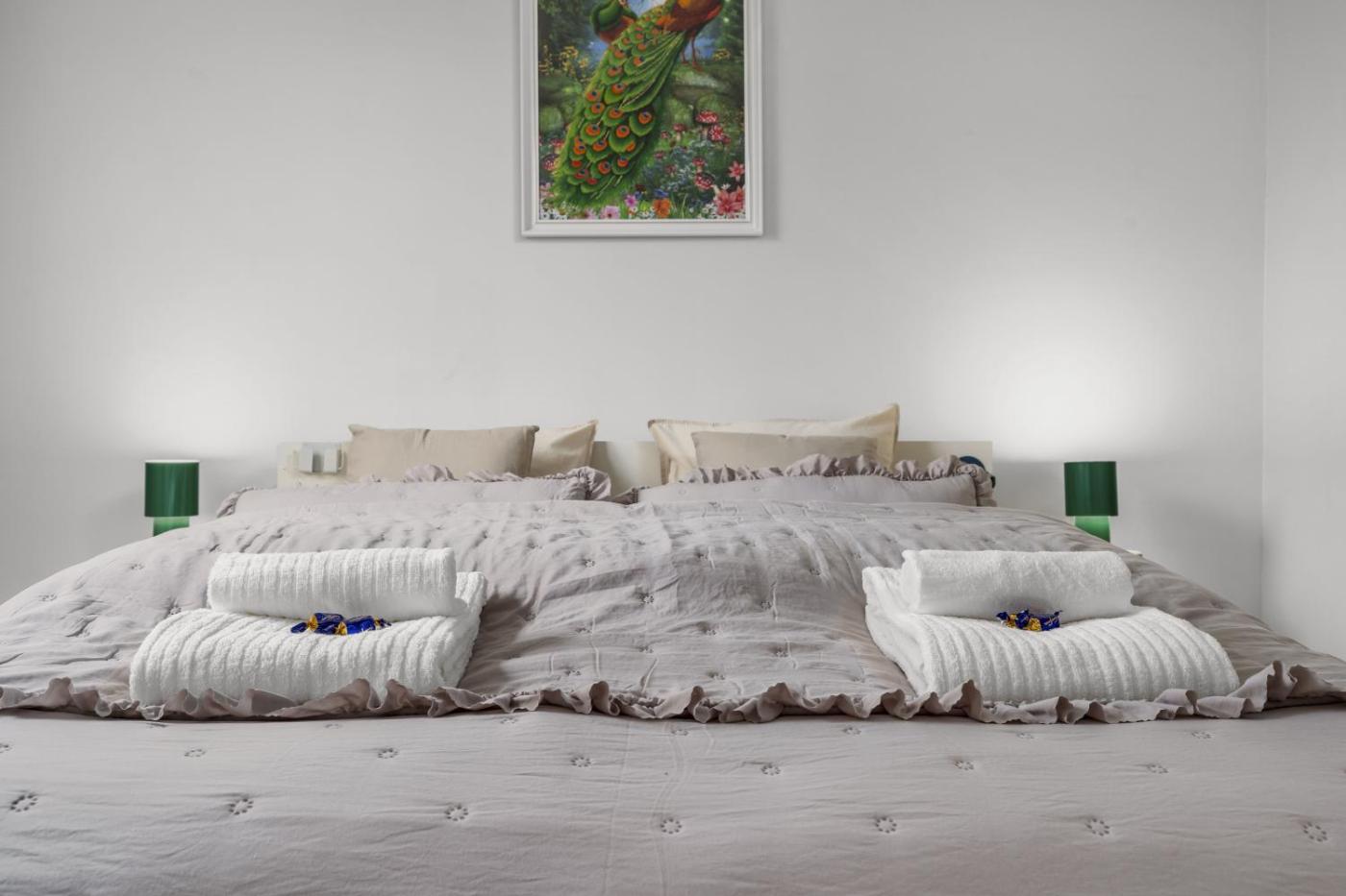 Superior Apartment with Sauna. Guests will have a special experience as the apartment features a sauna. This spacious apartment consists of 1 living room, 1 separate bedroom and 1 bathroom with a shower and a bidet. Meals can be prepared in the well-fitted kitchen, which is equipped with a stovetop, a refrigerator, a dishwasher and an oven. The apartment provides a washing machine, a private entrance, soundproof walls, a flat-screen TV with streaming services, as well as ancourtyard view. The unit offers 2 beds and 1 futon.
