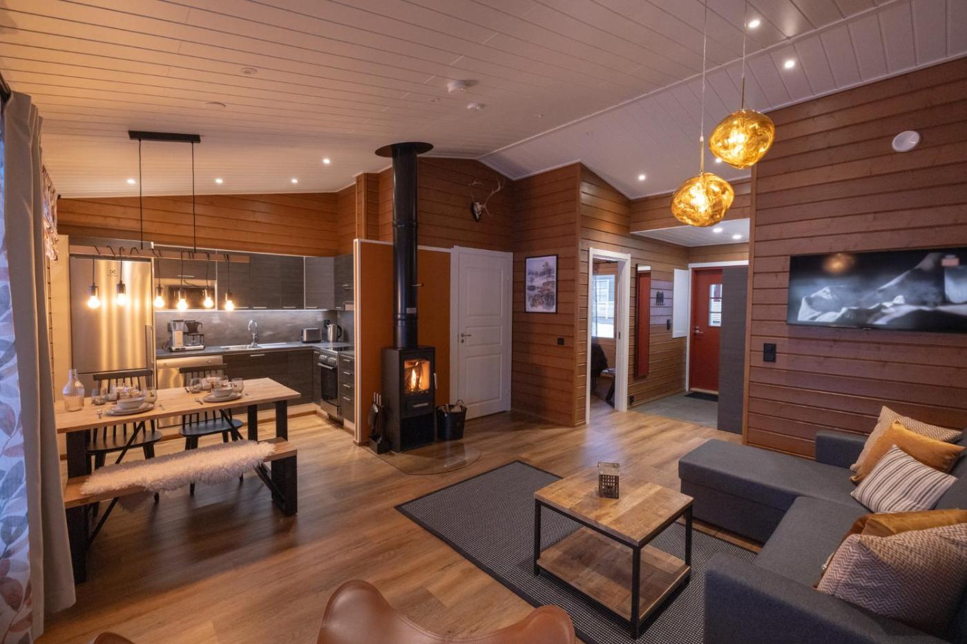 All accommodation at Sallatunturin Tuvat features modern kitchen facilities, wooden floors and a living room with a TV. Some options include a fireplace and a private sauna.