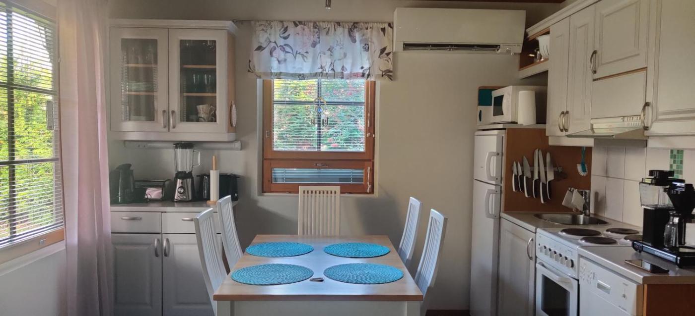 Two-Bedroom House. This holiday home boasts a sauna and a fireplace. Featuring a private entrance, this air-conditioned holiday home consists of 1 living room, 2 separate bedrooms and 1 bathroom with a shower and a bidet. Guests will find a stovetop, a refrigerator, a dishwasher and kitchenware in the fully equipped kitchen. The holiday home also offers a barbecue. Boasting a terrace with garden views, this holiday home also provides a washing machine and a flat-screen TV. The unit offers 3 beds.