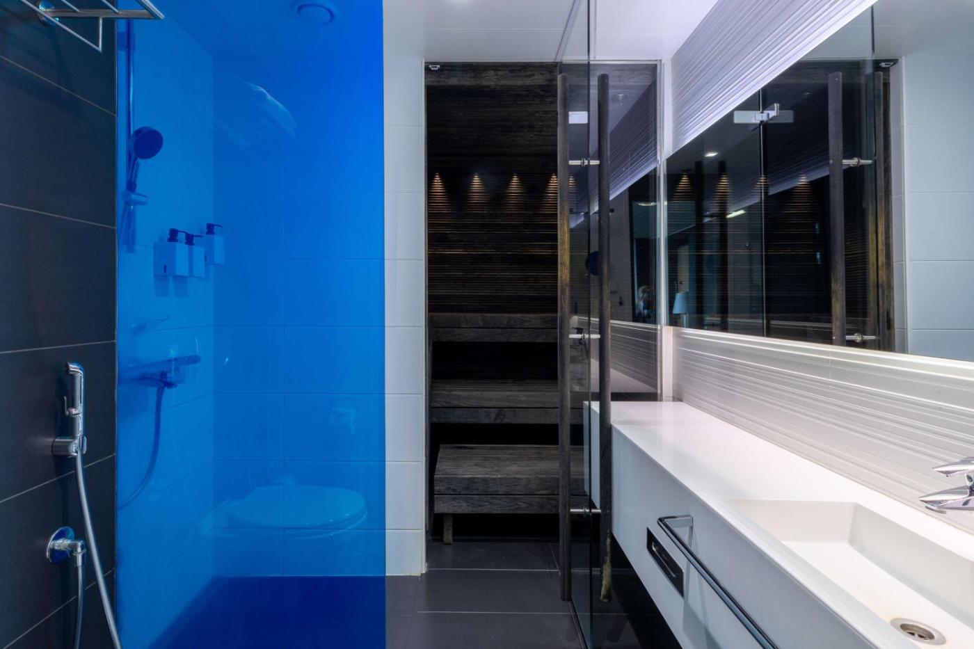 Guests can work out in the gym or relax in the sauna. Bicycle rental is available on site.
