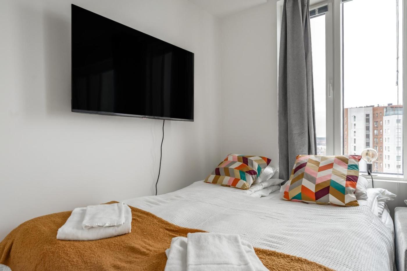 Offering city views, Topaasi - Nokia Arena by Come in! is an accommodation located in Tampere, 600 metres from Tampere University and 700 metres from Tampere Hall. There is a private entrance at the aparthotel for the convenience of those who stay. Both parking on-site and free WiFi are available at the aparthotel.