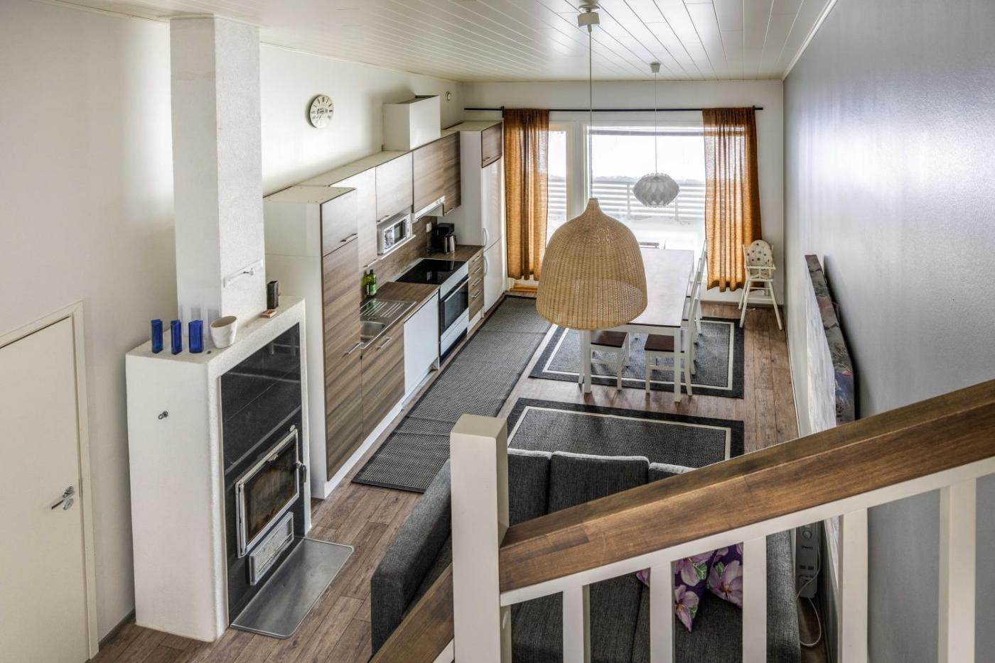 Three-Bedroom Apartment. This apartment features a sauna. Boasting a private entrance, this spacious apartment also features 3 separate bedrooms, 1 bathroom with a shower, a kitchenette and a dining area. Guests can make meals in the kitchenette that has a stovetop, a refrigerator, a dishwasher and kitchenware. Featuring a balcony with lake views, this apartment also features a washing machine and a flat-screen TV. The unit has 6 beds.