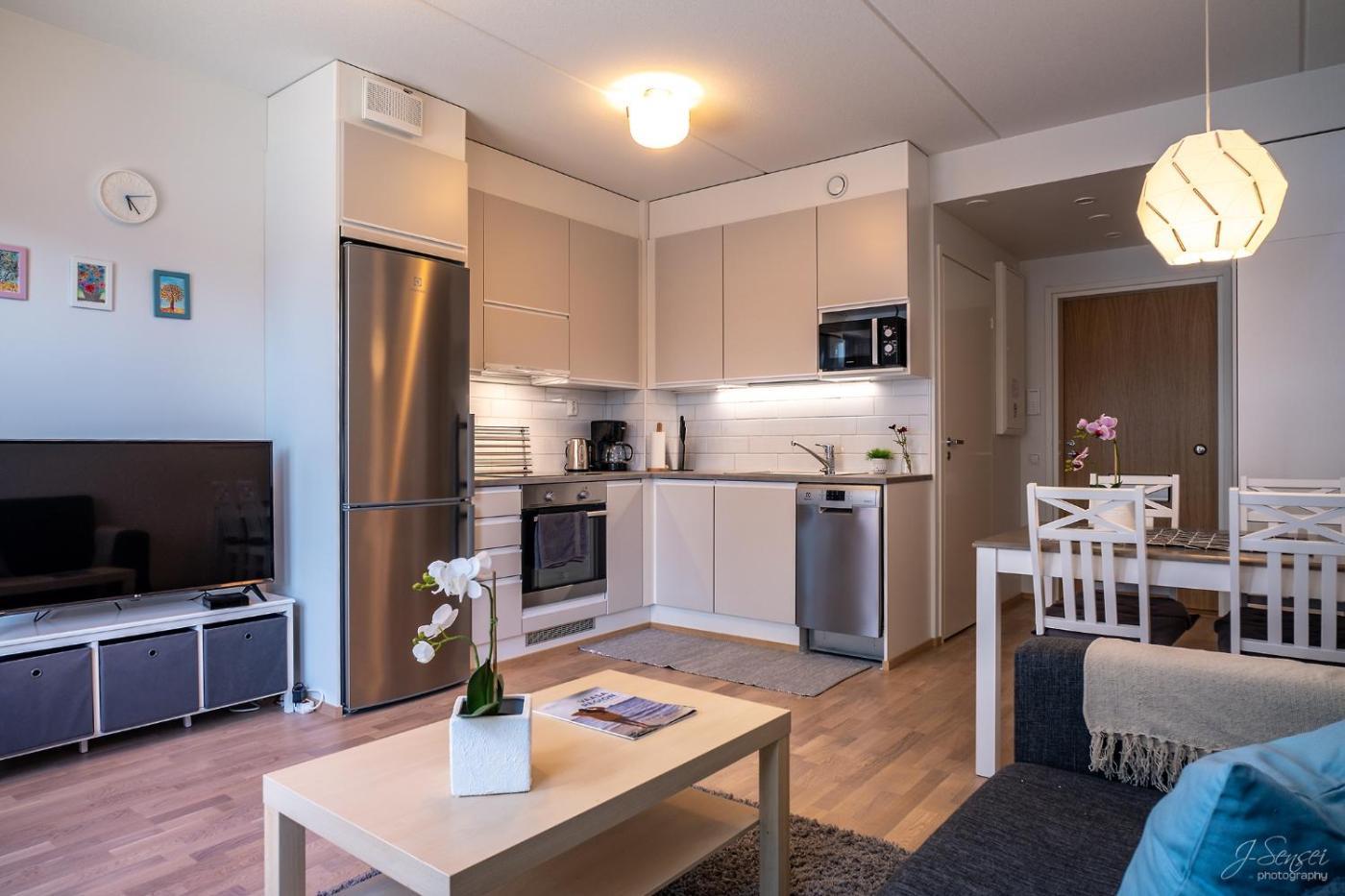 Apartment. This apartments standout feature is the sauna. Boasting a private entrance, this apartment includes 1 living room, 1 separate bedroom and 1 bathroom with a walk-in shower and a hairdryer. Guests will find a stovetop, a refrigerator, a dishwasher and kitchenware in the fully equipped kitchen. The apartment also features a barbecue. The apartment offers a washing machine, soundproof walls, a tea and coffee maker, a flat-screen TV with cable channels, as well as garden views. The unit has 3 beds.